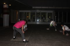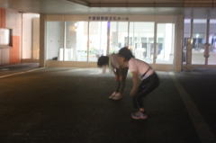 | 蛍光タスキをかけウォーキングへ |